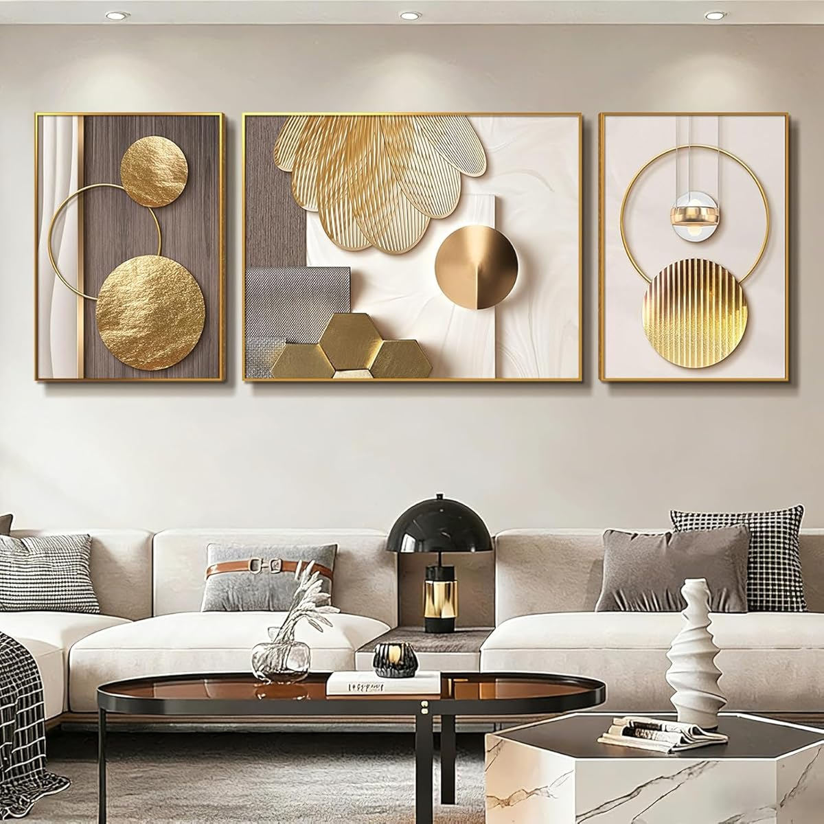 Azartslr Large Framed Modern Gold Wall Art, Luxury 3 Pieces Wall Decor